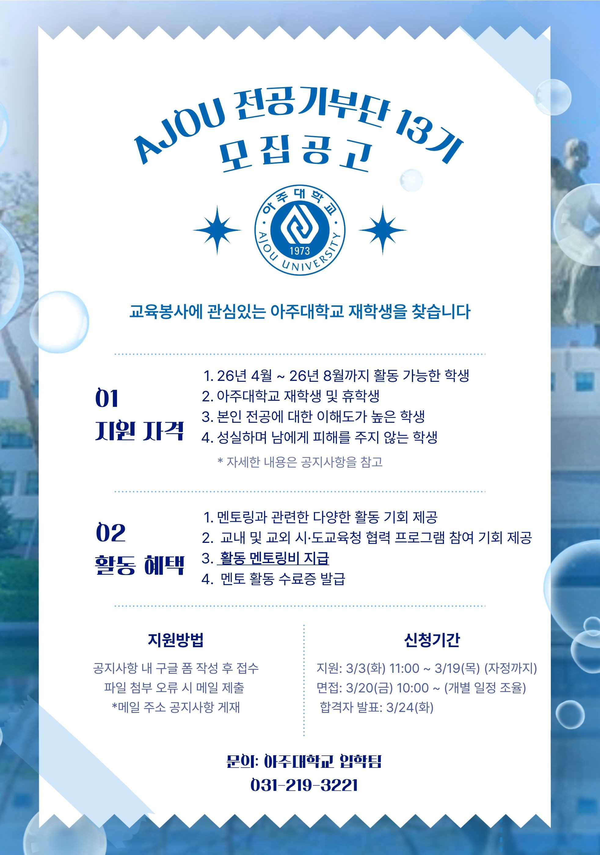 [기타] [기타] 2026 AJOU 전공기부단 모집(~3/19)