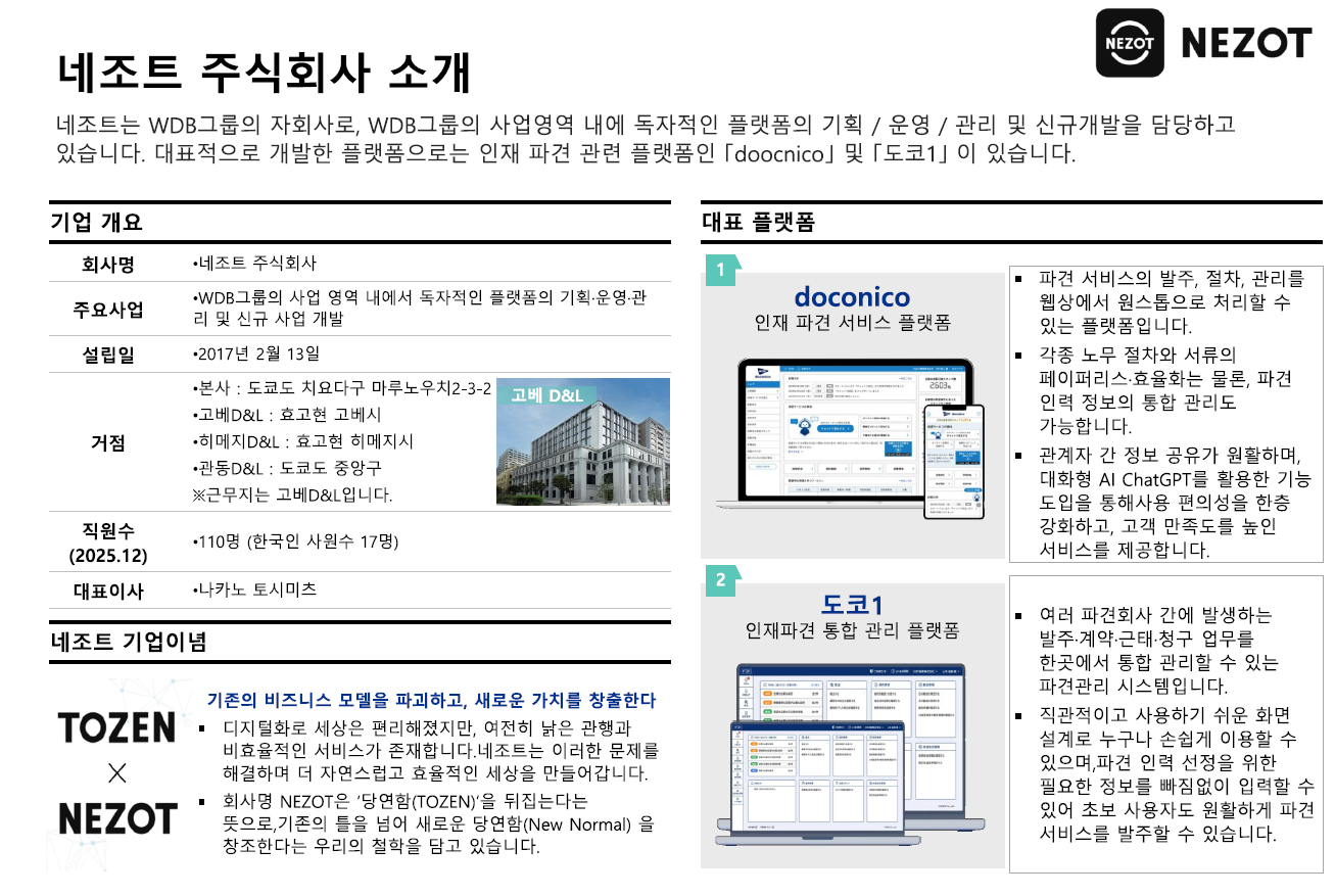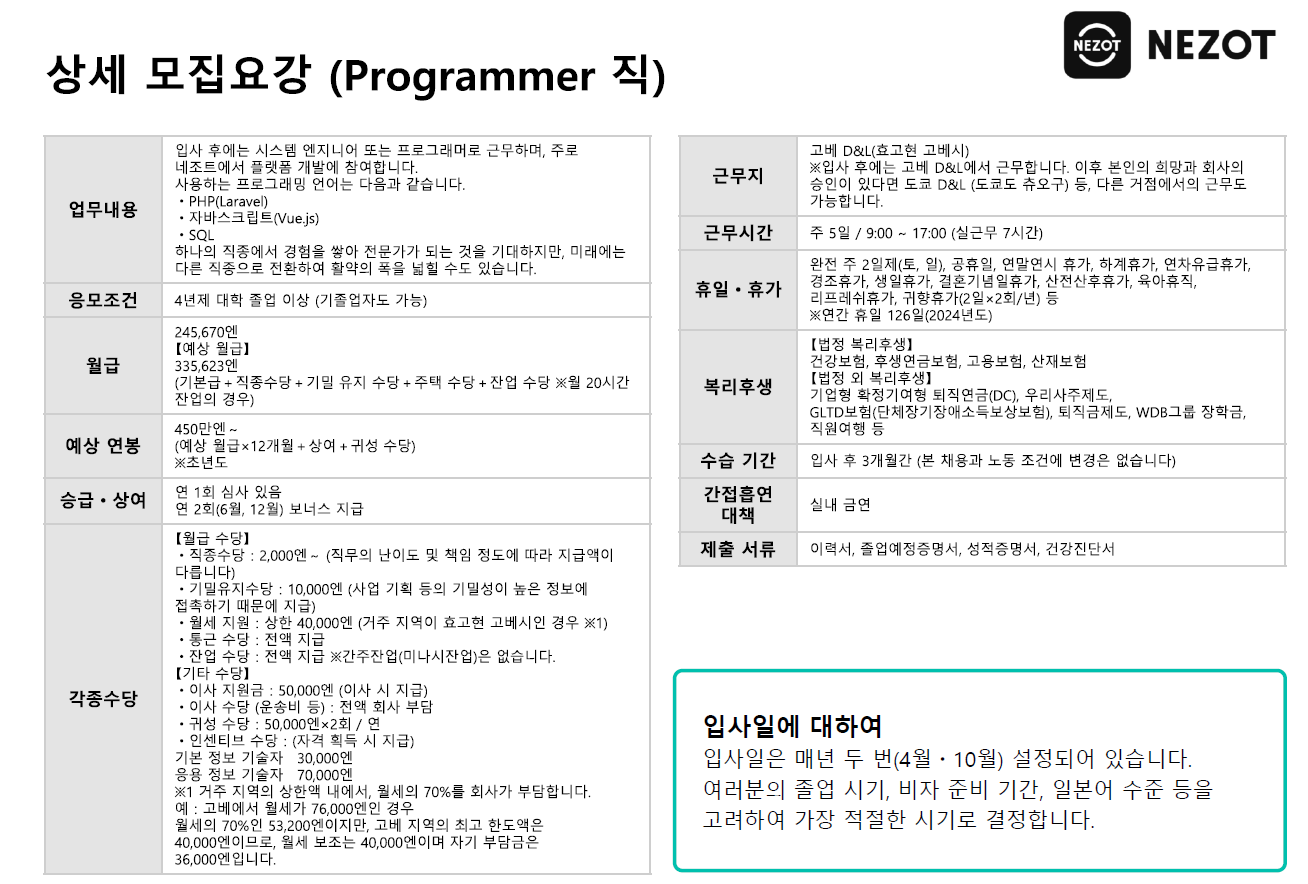 - 네조트 공식HP 한국인재채용 https://www.nezot.co.jp/