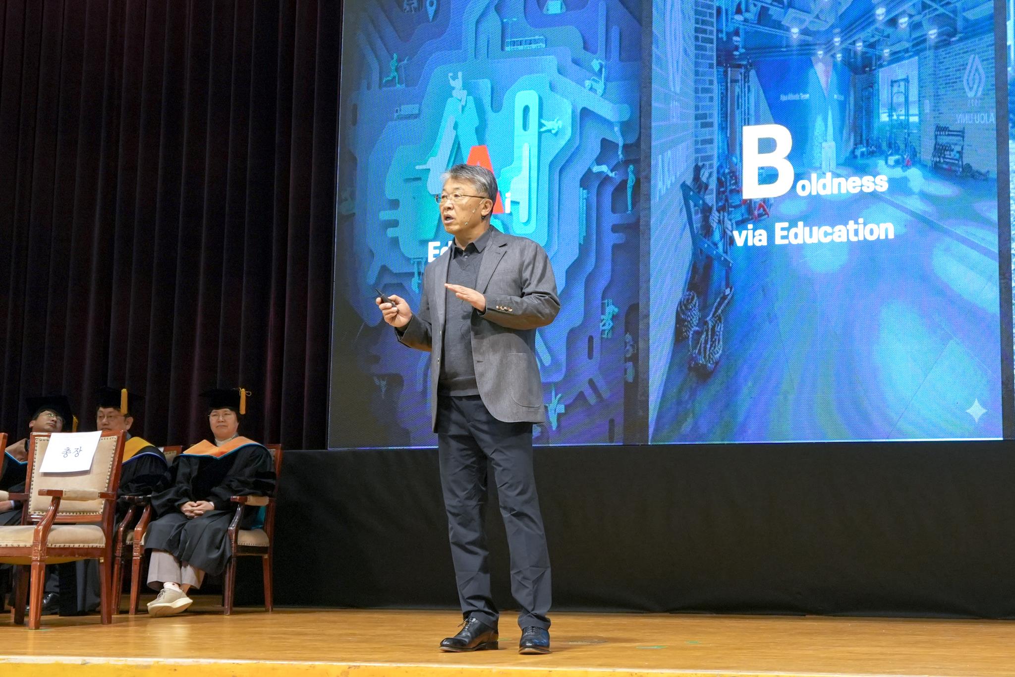 신입생들에게 아주대의 교육 철학과 목표를 전하는 최기주 총장